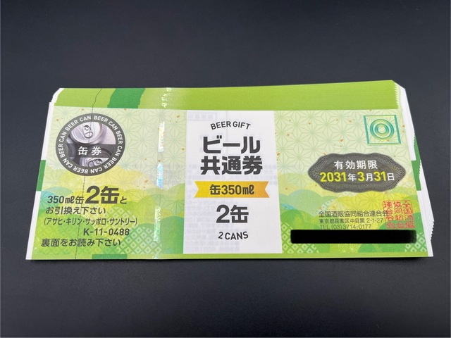 網走市よりお越しのお客様より、【ビール共通券 350ml缶2缶 額面488円】をお売りいただきました!